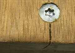 För att förhindra att skruvarna sticker ut rekommenderar vi att alla skruvar försänkas.