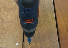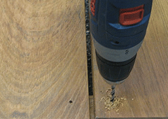 Förborra alla hål med en borr så att skruven hålls jämn efter montering. Skruvhålet ska ca. var 20-25 mm från kanten.